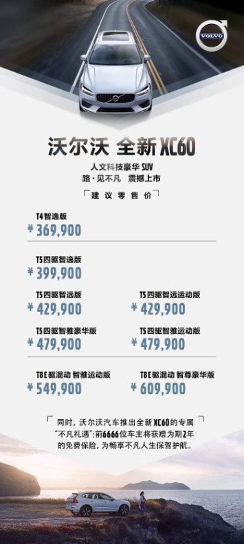 首批6666位全新XC60车主,可获得2年免费保险,0首付+18期0息,限时限量抢兑,定车赠送价值5980元BLUE AIR空气净化器,购车有机会获得环球帆船赛香港站双人观赛之旅。
