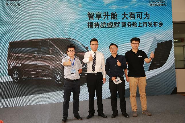 此次福特途睿欧商务舱的南京上市会宾客云集,座无虚席,活动环节设置紧凑,活泼有趣。一轮精彩绝伦的开场表演和激情洋溢的领导致辞后,在全场灯光聚集与音效的配合下,福特途睿欧商务舱被缓缓拉开神秘的帷幕,宣告着福特途睿欧商务舱在南京的正式亮相。此次南京站区域上市发布会上福特途睿欧商务舱再次汇聚全场目光,用强大的品牌号召力和产品力完美诠释了“智享升舱、大有可为”的活动主题, 共计20位客户加入了福特途睿欧的大家族。江铃福特官方表示:接下来还将在广州、深圳、重庆等近20个城市陆续进行区域上市发布会。